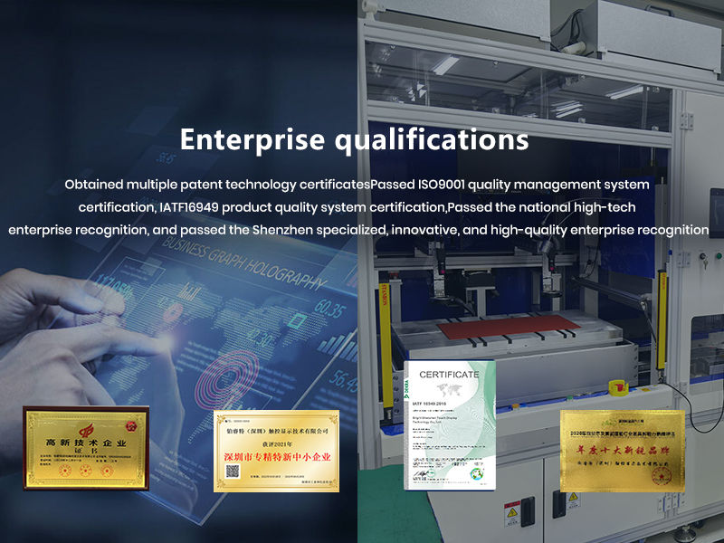 Bo Rui Te (Shenzhen) Touch Display Technology Co., Ltd. was established in 2013 and is located in the Phoenix Third Industrial Zone of Fuyong, Shenzhen. We are an innovative technology enterprise engaged in the research and development, design, production, sales, and service of touch screens, providing customized display product solutions and fast service support in all aspects. To keep up with the latest technological demands of industrial development, we develop, produce, and manufacture touch screens, touch display module assemblies, and related materials and components around the market direction of "touch display hardware+software platform+application scenarios".